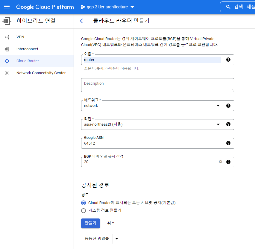 -private subnet 내에 위치한 인스턴스에 접근하기 위해 Cloud Router를 통한 NAT 설정을 해준다.