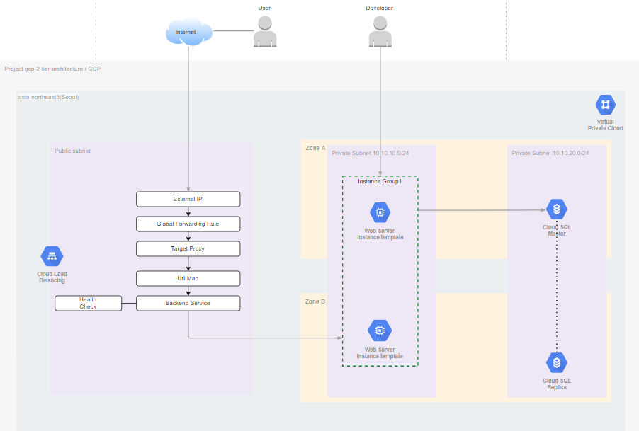 지난 이론편에서 얻은 지식을 바탕으로 GCP에 GCP의 managed instance group을 활용한 2 tier architecture를 만들어보자.