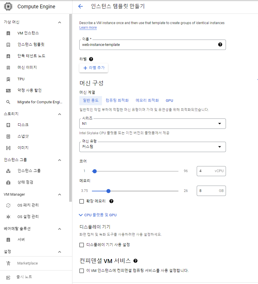 1. instance template 생성