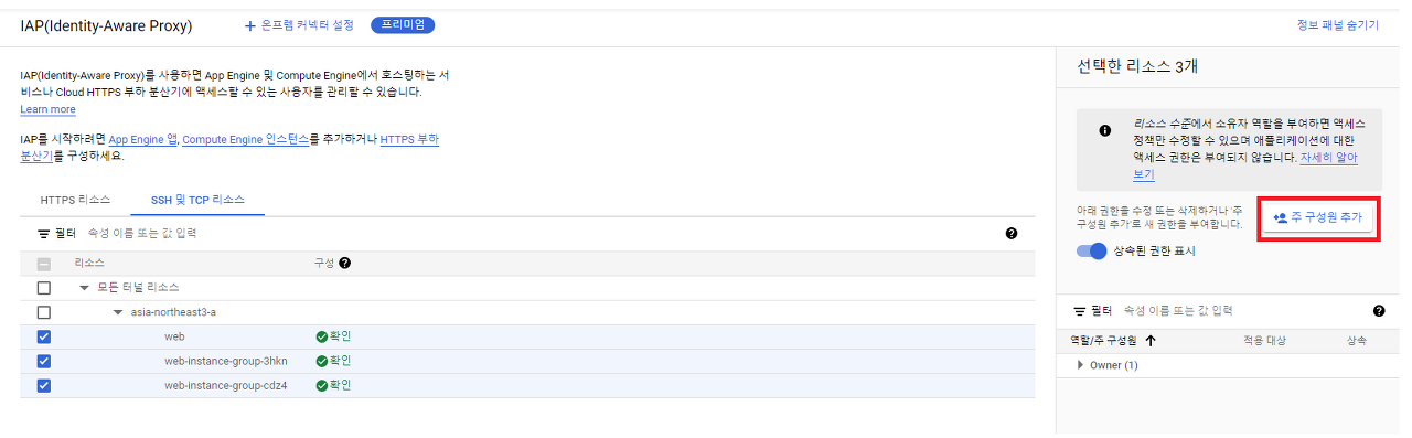 - IAP 접근을 하고싶은 인스턴스를 체크한다
