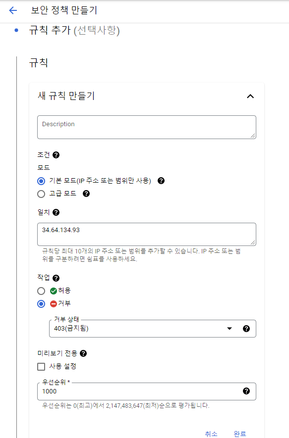 지난번 생성한 2 tier architecture에 Cloud Armor 보안 정책을 만들어보자.