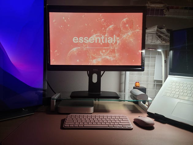 위의 맥 스튜디오와 스튜디오 디스플레이를 조합을 보다가 현실의 데스크 환경을 보니 비교되네요. 언젠간 깔끔한 맥/윈도우 조합과 모션데스크, 허먼밀러, 리얼포스 등 주변기기까지 완벽히 갖춰진 데스크 환경을 완성해야겠습니다. 아직까지 윈도우 환경으로도 잘 지내왔으니 여기에 Mac mini와 보조기기들을 추가해보았습니다.