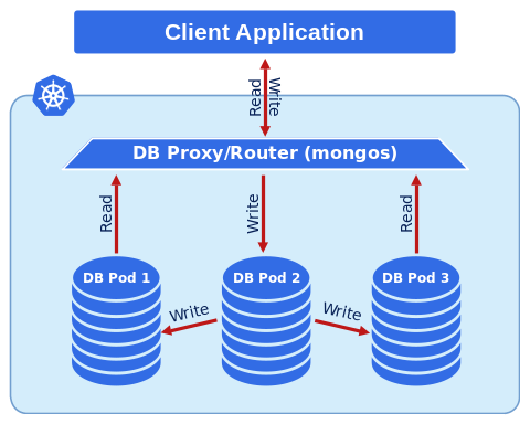 - 샤드 접근 : mongos Pods — query routers, which acts as an entry point for client applications