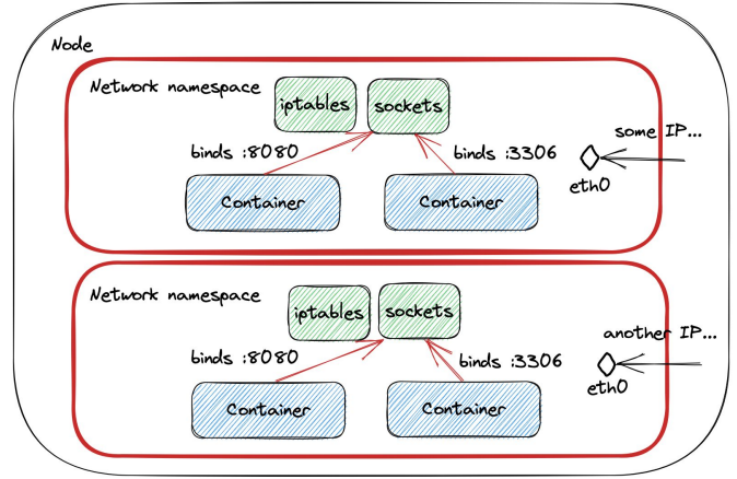 각 컨테이너(Container)는 네트워크 리소스를 공유하는 프로세스입니다.