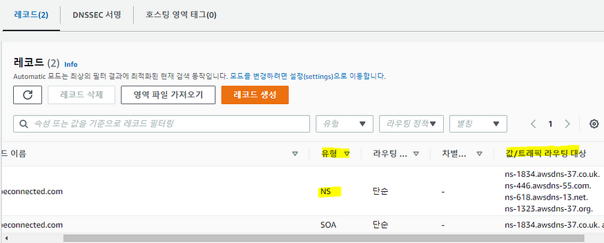 - Hosted Zone에 생성된 NS를 등록된 도메인의 NS 서버에 등록해줄 것