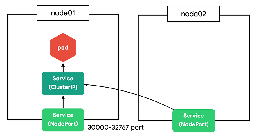 - NodePort : 클러스터 외부(노드)에서 접근할 수 있도록 NodePort 서비스를 만들 수 있습니다.