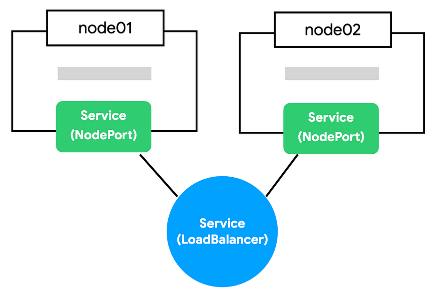 - LoadBalancer : NodePort의 단점은 노드가 사라졌을 때 자동으로 다른 노드를 통해 접근이 불가능하다는 점입니다. 예를 들어, 3개의 노드가 있다면 3개 중에 아무 노드로 접근해도 NodePort로 연결할 수 있지만 어떤 노드가 살아 있는지는 알 수가 없습니다. Load Balancer가 알아서 살아 있는 노드에 접근하면 NodePort의 단점을 없앨 수 있습니다.