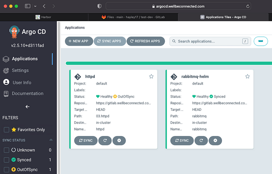 httpd OutOfSync Healthy