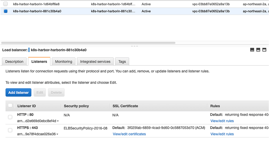 - HTTPS 접속을 위해 전에 미리 AWS Certificate Manager(ACM)로 인증서를 생성해둡니다.
