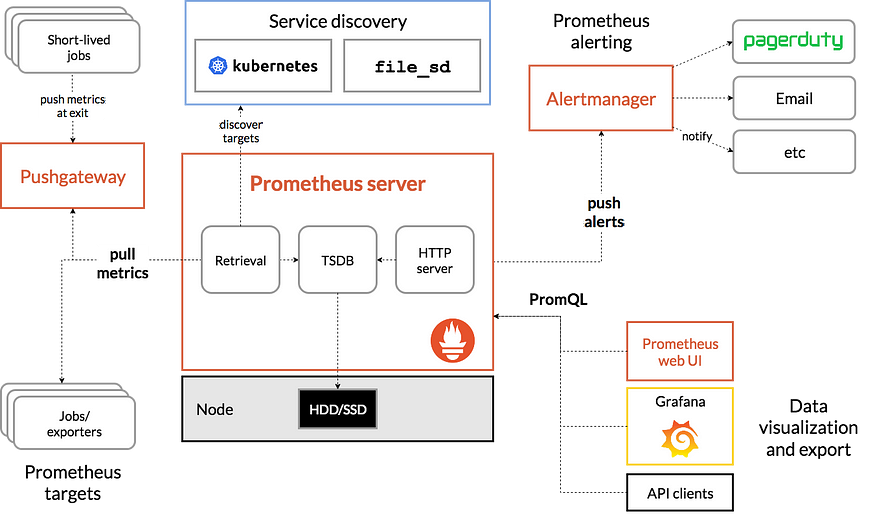 - 수집방식:Pull방식(에이전트는 메트릭을 수집하며, 중앙 시스템으로 데이터 전송을 위한 정보가 보통 에이전트에 포함되어있다.)