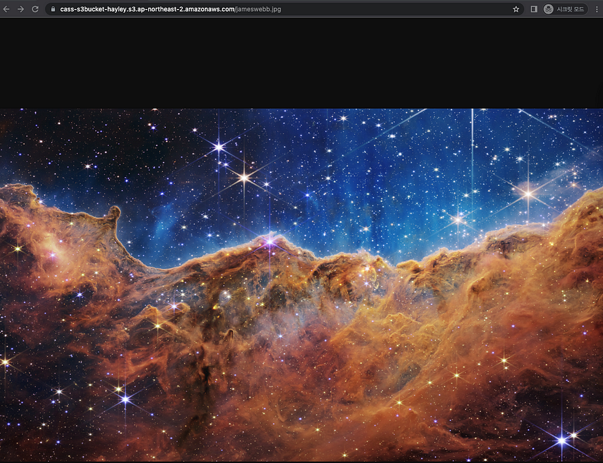 curl -s https://www.nasa.gov/sites/default/files/thumbnails/image/main_image_star-forming_region_carina_nircam_final-5mb.jpg -o jameswebb.jpg# 관리자 프로필로 이미지를 업로드하고, public-read ACL 적용