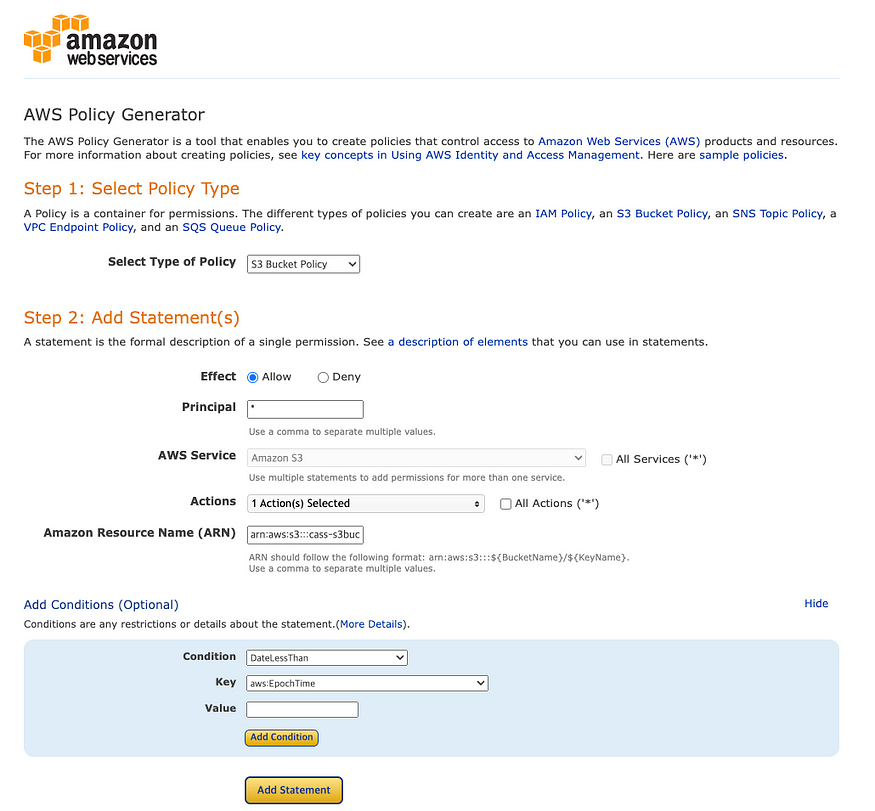 - Resource 에 자신의 버킷 ARN 과 Condition에 EpochTime 설정