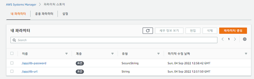 - Parameter Store의 parameter는 Parameter Store에 저장된 텍스트 블록이나 이름의 리스트, 비밀번호, 또는 AMI ID와 같은 데이터를 의미합니다.