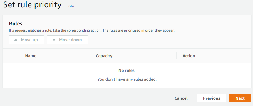 6. 설정된 Rule 없으므로 “Set Rule Priority” 에서 “Next” 를 클릭합니다.