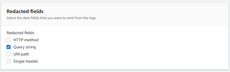 4. 아래 Redacted fields에서는 필요없다고 생각되는 필드인 “Query string“을 클릭합니다. 이 설정으로 인해 로그에는 Query string값이 기록되지 않습니다. 설정이 끝나면 “Enable logging”을 클릭하여 저장합니다.