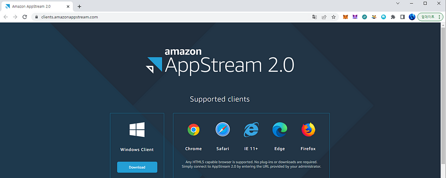 접속하여 애플리케이션 접속, 파일 업로드/다운로드 등 AppStream 기능을 테스트해봅니다.