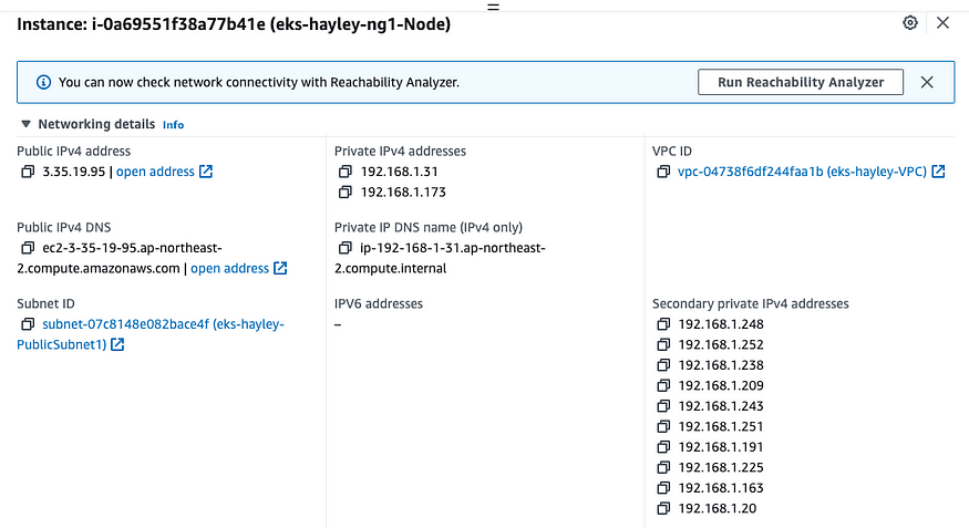 | eks-hayley-ng1-Node | 192.168.3.94 | 13.209.74.242 | running |