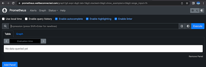 $ kubectl exec -it netshoot-pod -- curl -s kube-prometheus-stack-prometheus.monitoring:9090/graph -v ; echo