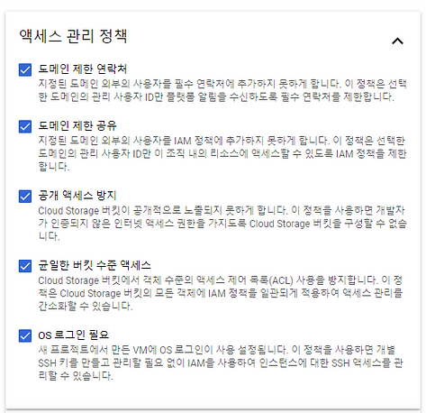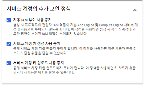 참고: 이러한 정책은 조직 수준에서 설정됩니다. 조직에 속한 모든 폴더 또는 프로젝트에 자동으로 상속됩니다.
