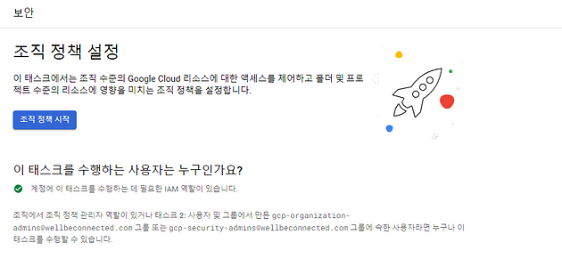 아래 목록에는 Google에서 대부분의 기업 고객에게 권장하는 정책 집합이 나와 있습니다. 조직에 추가 비용이 발생하지 않으며 나중에 언제든지 변경할 수 있습니다.[조직 정책 알아보기]