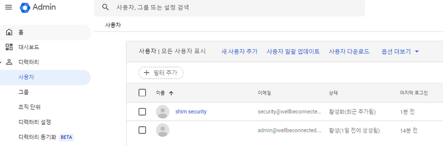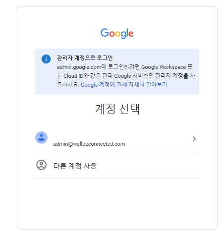 접속 후 admin.google.com 콘솔에서 조직을 위한 계정을 생성해줍니다.
