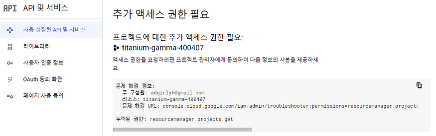 해당 계정에 누락된 권한을 부여합니다.(resourcemanager.projects.get)