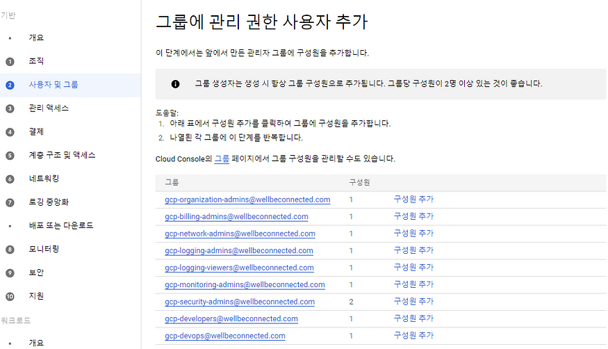 gcp-security-admins@wellbeconnected.com 그룹에 추가해주었습니다.