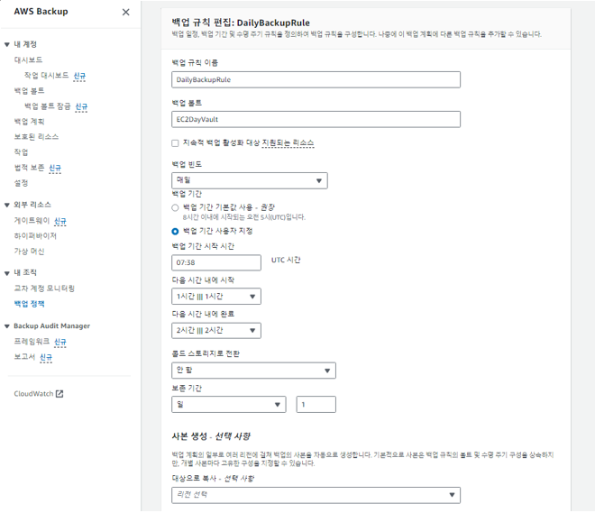 - 백업 규칙을 설정해줍니다.
