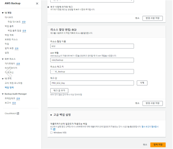 4. 연동할 계정 내 백업할 리소스 내에 태그(key:value) 정책을 넣어줍니다.
