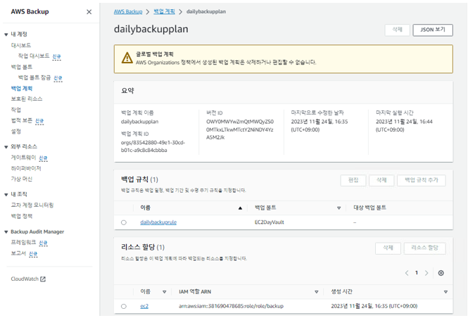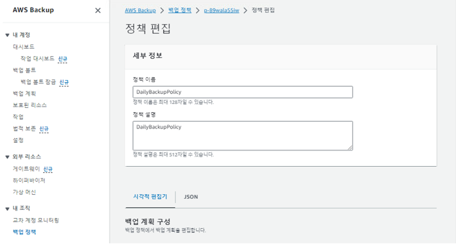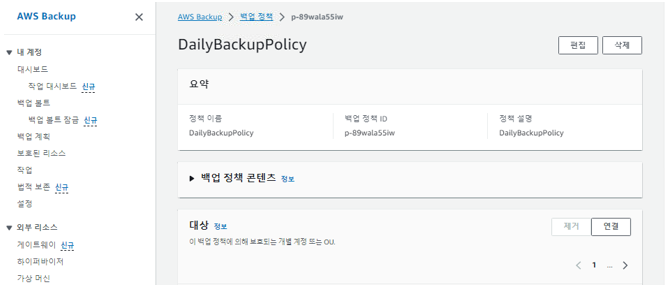 - 아래처럼 백업 정책이 생성되었습니다.