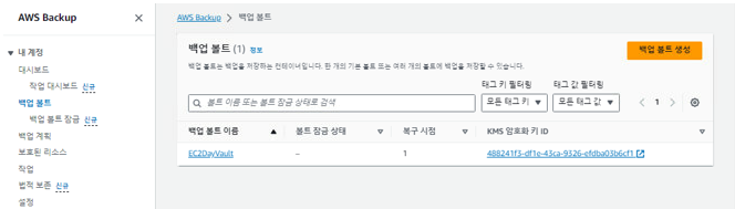 6. 연동할 계정 내 백업 볼트를 생성해줍니다.