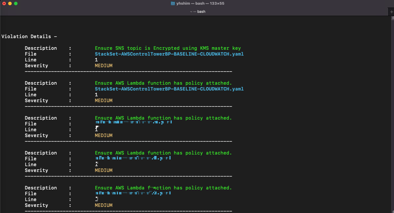 아래와 같이 Summary로 현재 IaC Template의 취약성을 나타내줍니다.