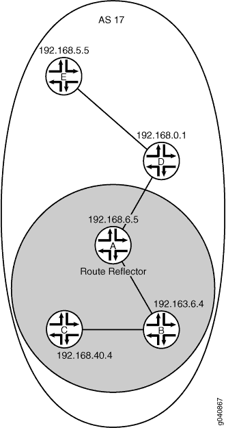 경로 리플렉터(RR)는 내부 BGP의 연결 수를 줄입니다. 단일 라우터는 내부 라우터 클러스터와 피어링하는 중앙 허브 역할을 할 수 있습니다. 네트워크를 여러 클러스터와 RR로 나눌 수 있습니다. RR만 서로 간에 그리고 외부 BGP 라우터와 통신합니다.
