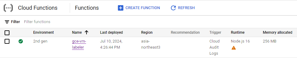 Compute Engine VM 인스턴스가 생성될 때 Cloud 감사 로그 이벤트를 수신하는 Node.js 함수를 생성합니다.