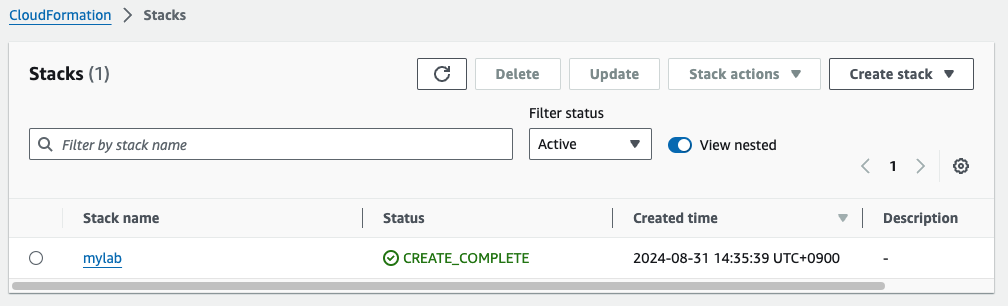 aws cloudformation describe-stacks --stack-name mylab --query 'Stacks[*].Outputs[0].OutputValue' --output text --region ap-northeast-2