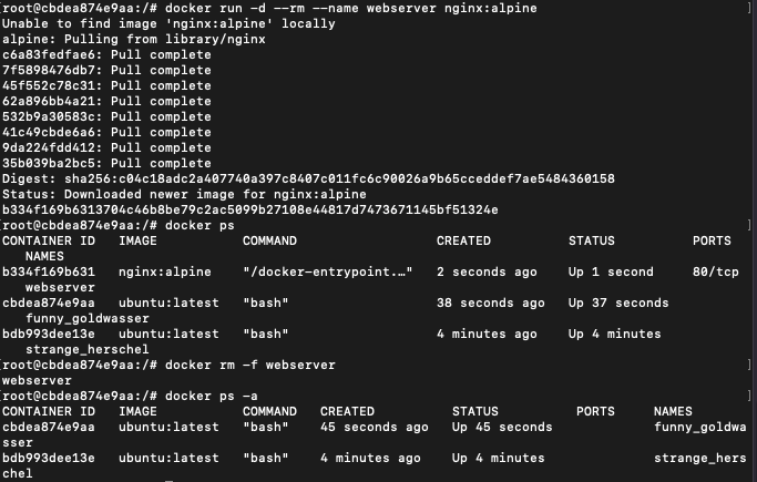 # Detached 모드인 컨테이너는 반드시 컨테이너에서 프로그램이 실행돼야 하며 프로그램이 실행되지 않으면 컨테이너는 종료됩니다.