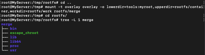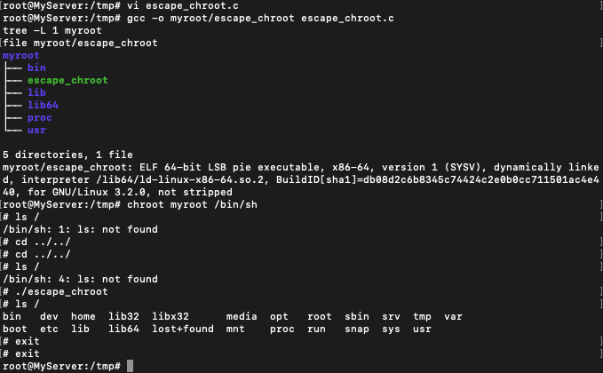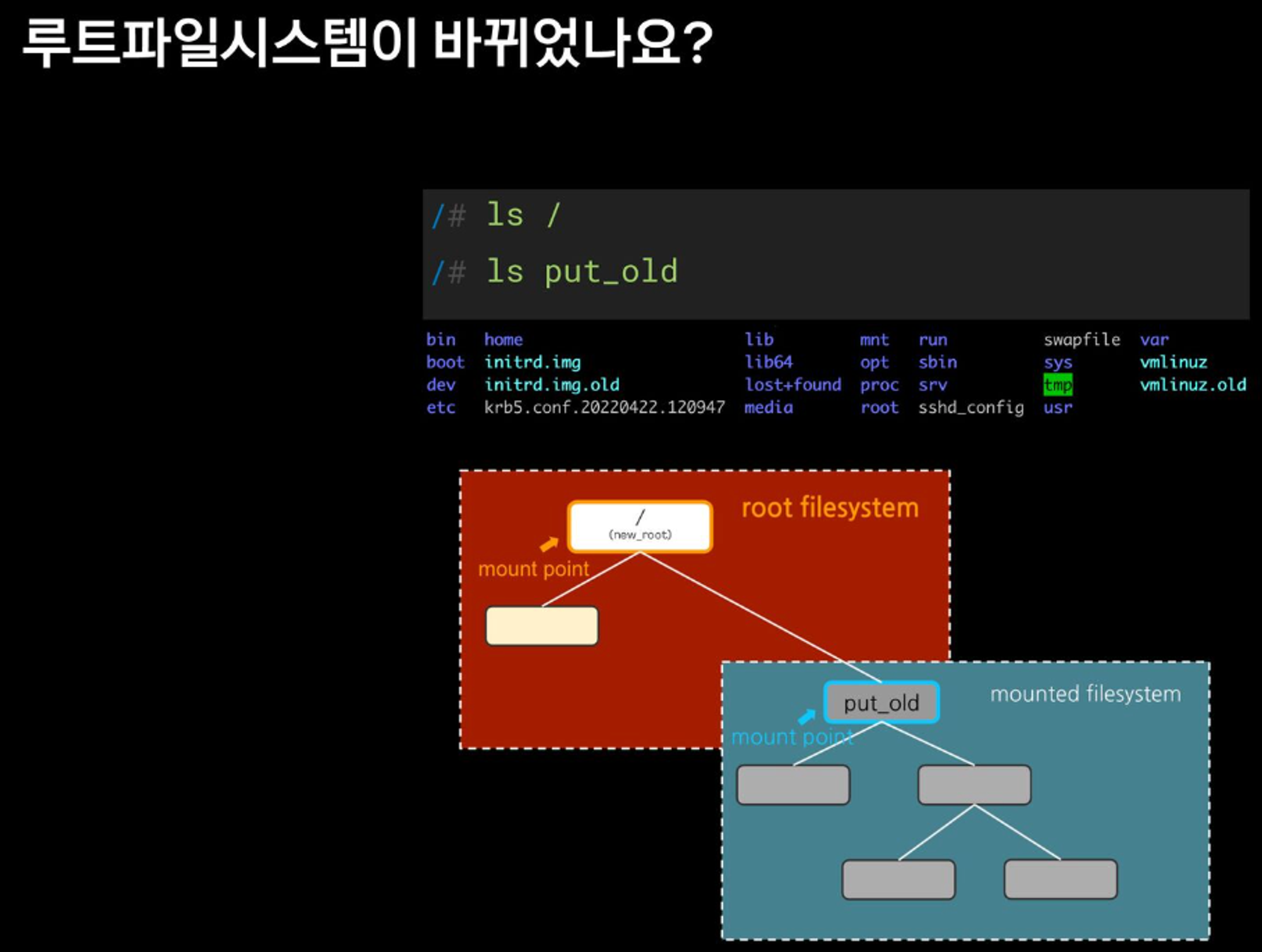 # chroot 요약 : 경로를 모으고(패키징), 경로에 가둬서 실행(격리)