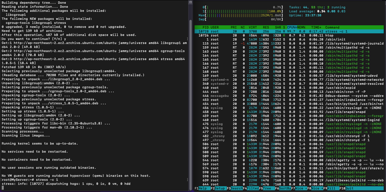 ## 3. 제어그룹 프로세스 할당 : stress 실행