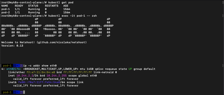 docker exec -it myk8s-worker2 sh -c 'apt update && apt install tree jq psmisc lsof wget bridge-utils tcpdump iputils-ping -y'