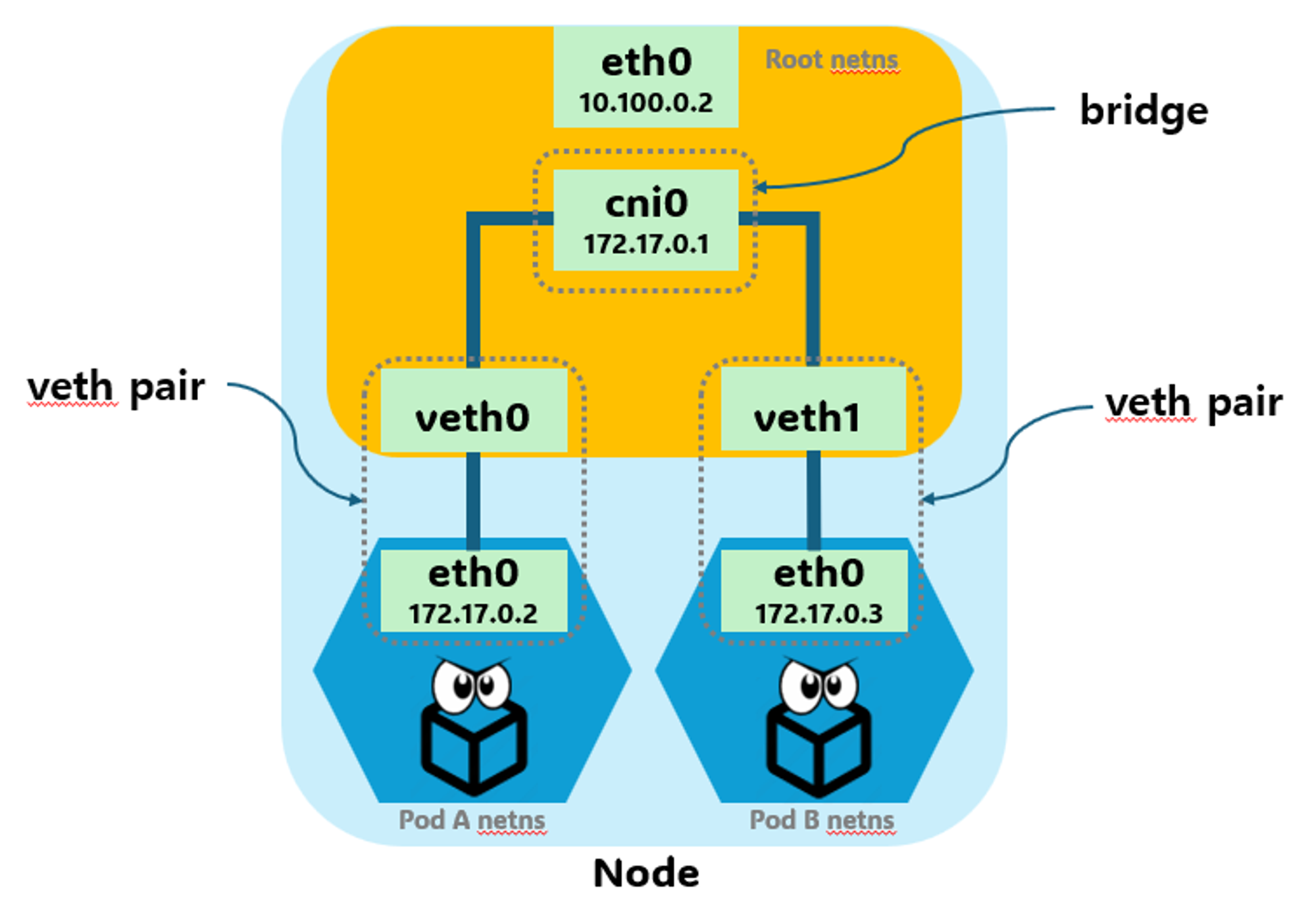 1. 파드와 파드 간 통신 시 NAT 없이 통신 가능