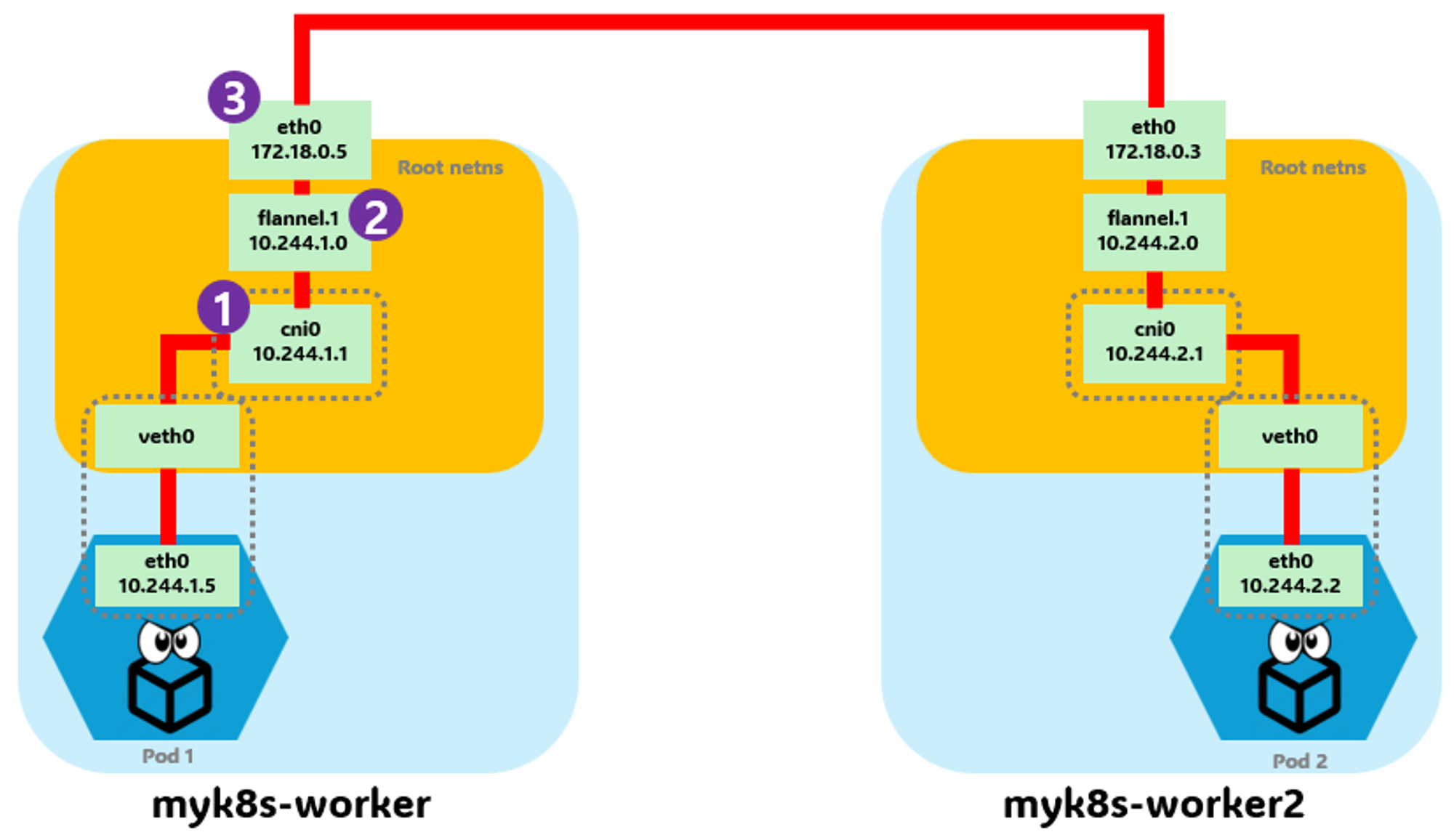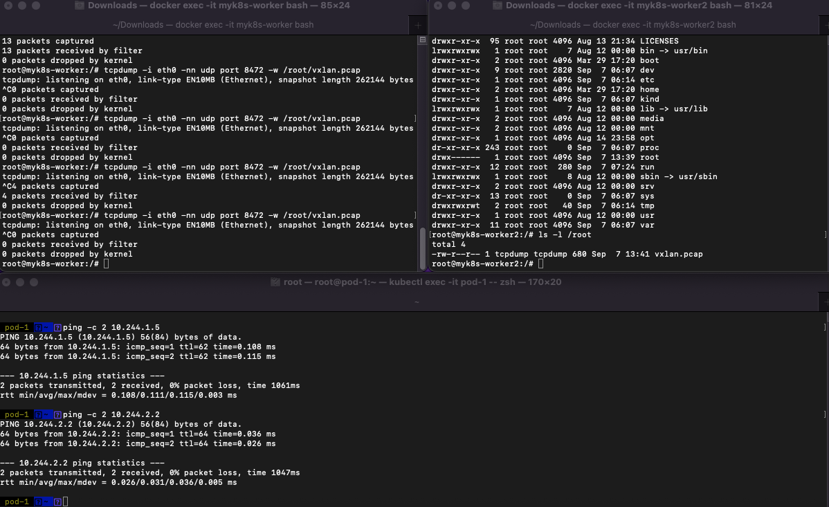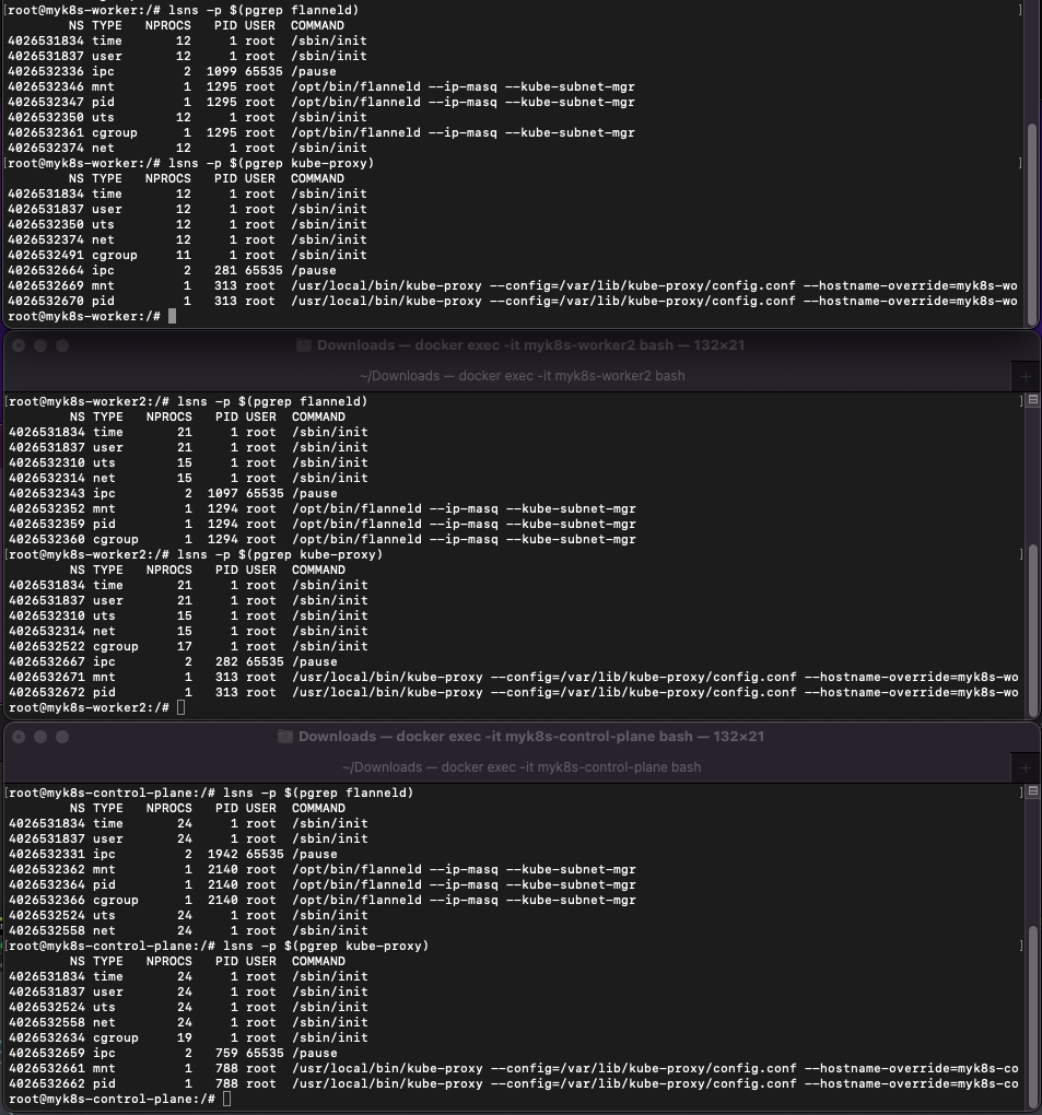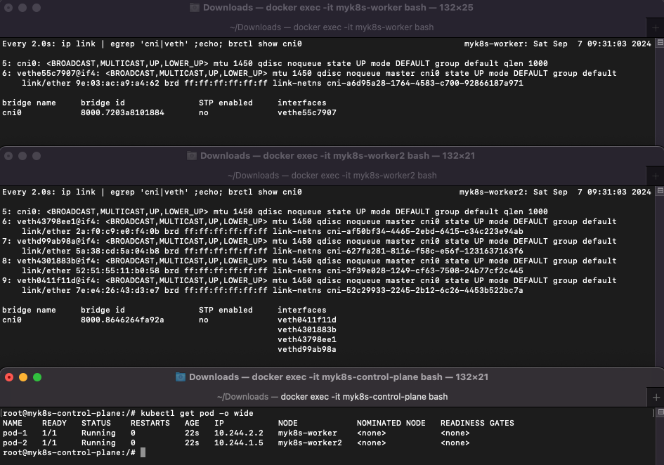docker exec -it myk8s-worker sh -c 'apt update && apt install tree jq psmisc lsof wget bridge-utils tcpdump iputils-ping -y'