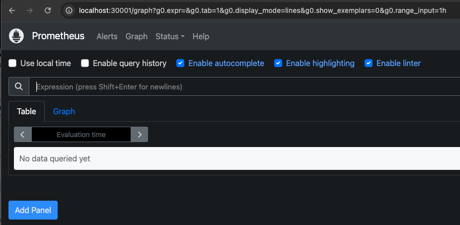 echo -e "Prometheus URL = http://localhost:30001"