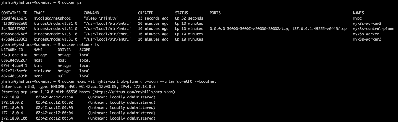 - 노드(실제로는 컨테이너) 네트워크 대역 : 172.18.0.0/16