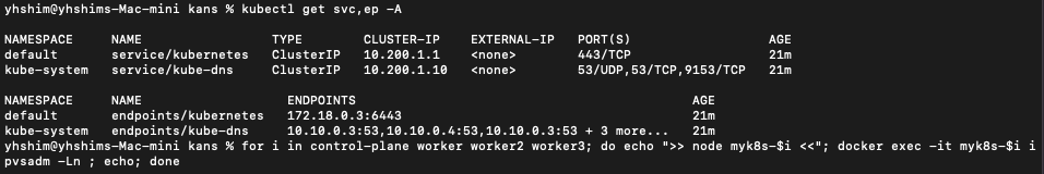 - 노드(실제로는 컨테이너) 네트워크 대역 : 172.18.0.0/16