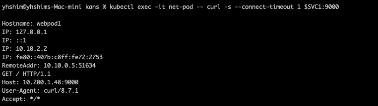 kubectl exec -it net-pod -- curl -s --connect-timeout 1 $SVC1:9000