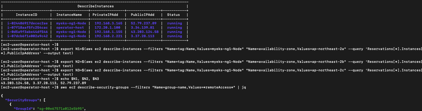 export N3=$(aws ec2 describe-instances --filters "Name=tag:Name,Values=myeks-ng1-Node" "Name=availability-zone,Values=ap-northeast-2c" --query 'Reservations[*].Instances[*].PublicIpAddress' --output text)