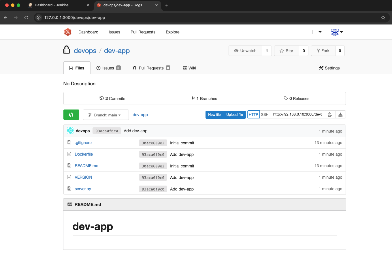 url: 'http://192.168.0.10:3000/devops/dev-app.git', // Git에서 코드 체크아웃