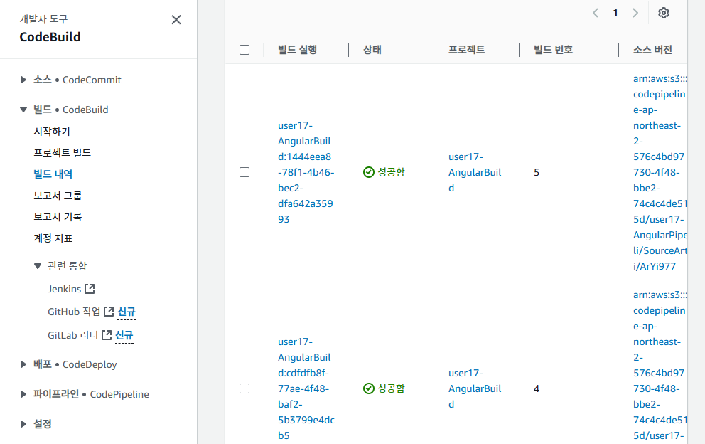 - CodeCommit/GitHub (소스): 개발자가 소스 코드를 리포지토리에 푸시합니다.