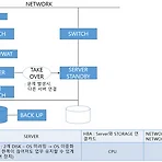 · Cluster : 서버 이중화 기술 중 1개 · Server Cluster 종류 : ex) MS → MSCS / IBM → HACMP · Server와 PC 차이점 : 1. 성능 2. DATA 공유 · Switch 사용 이유? 특히, SAN Switch 사용 이유? 서로 다른 종류의 저장장치들이 함께 연결되어 있어 모든 사용자들이 공유할 수 있을뿐 아니라 백업, 복원, 영구보관, 검색 등이 가능하고 한 저장장치에서 다른 저장장치로 데이터를 이동시킬 수 있다 · Server 위쪽에 → OS 설치 → Windows(MS) / AIX(IBM) / HPUX(HP) / SUN-Solaris(SUN)/ Linux(RedHAT) → 서비스를 하기 위한 준비 단계 끝 → DBMS/WEB/WAS 올리는 것에 따라 ~..