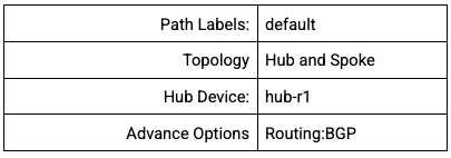 - 이러한 매개변수를 사용하여 BGP에 대한 hub-r1을 구성하고 "저장"을 클릭합니다.